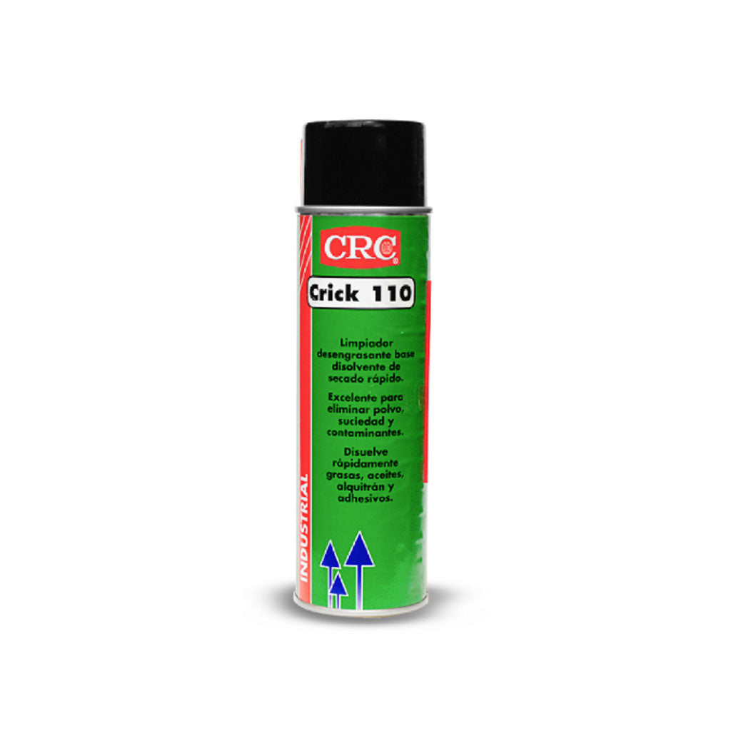 Limpiador desengrasante base solvente de secado rápido (libre de 1,1,1-tricloroetano y otros disolventes clorados), para eliminar polvo, suciedad y contaminantes. Indicado para pruebas no destructivas de metales mediante inspección por líquido penetrante. El control se lleva a cabo mediante la utilización de 3 productos: Crick 110 (limpiador), Crick 120 (penetrante) y Crick 130 (revelador). El Crick 110 es un líquido que disuelve rápidamente grasas, aceites, alquitrán y adhesivos. Acaba de manera muy eficiente con contaminantes y producto penetrante. Rápida evaporación para minimizar el tiempo de parada. No deja residuo. Estable, no mancha y no produce corrosión. No daña la capa de ozono. Aplicaciones: inspección de materiales, piezas, ensamblajes, equipos, superficies o estructuras. Fisuras y cavidades en zonas soldadas. Fisuras y cavidades causadas por fatiga de material u operaciones de corte. Comprobación de fugas en tuberías, tanques, depósitos, intercambiadores de calor. Fisuras en hierro fundido.