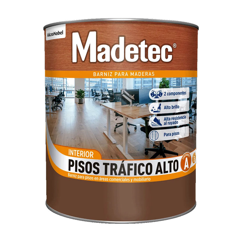 Componente A para el barniz poliuretano de dos componentes Madetec Pisos Tráfico Alto, cuya mezcla en las proporciones indicadas con el componente B (catalizador) produce un acabado transparente y de excelente tersura. Madetec Pisos Tráfico Alto tiene alta resistencia al rayado y al contacto accidental con agua, productos químicos, licores y alimentos. Beneficios: Estos son algunos de los beneficios que te ofrece Madetec Pisos Tráfico Alto Componente A: Alta resistencia al rayado. Acabado brillante.