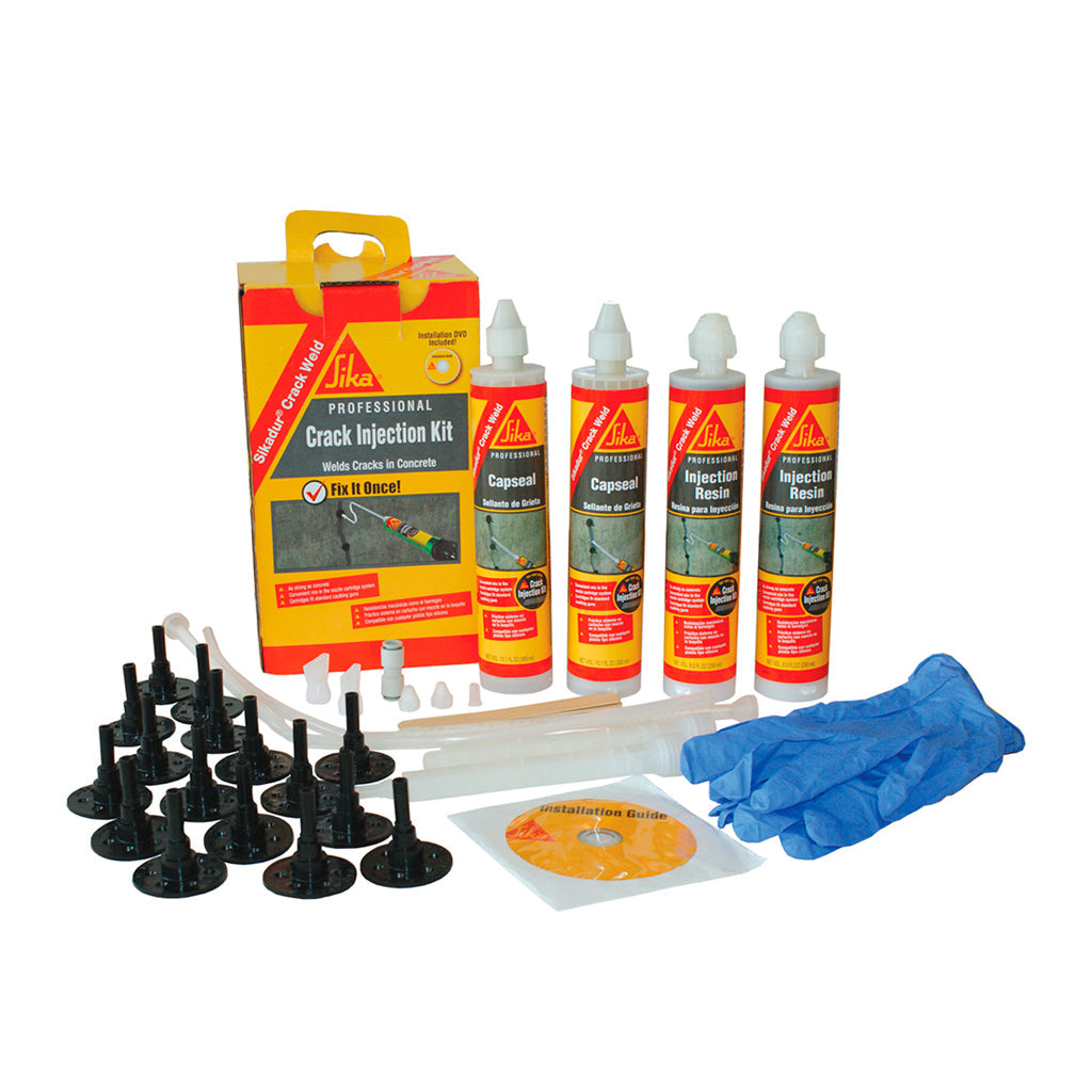 Kit de inyección de fisuras. El Sikadur Crack Weld es un sistema epóxico de inyección de fisuras en el concreto y en mampostería sólida, de 2 componentes y baja viscosidad. Cumple con la norma ASTM C881. Tan fuerte como el concreto. Mezcla exacta del adhesivo en la boquilla del cartucho. Se aplica con pistola de calafateo estándar. Uso: Inyección de fisuras a baja presión en concreto estructural y en mampostería sólida. Ventajas: Tan fuerte como el concreto. Mezcla exacta del adhesivo en la boquilla del cartucho. Se aplica con pistola de calafateo estándar.